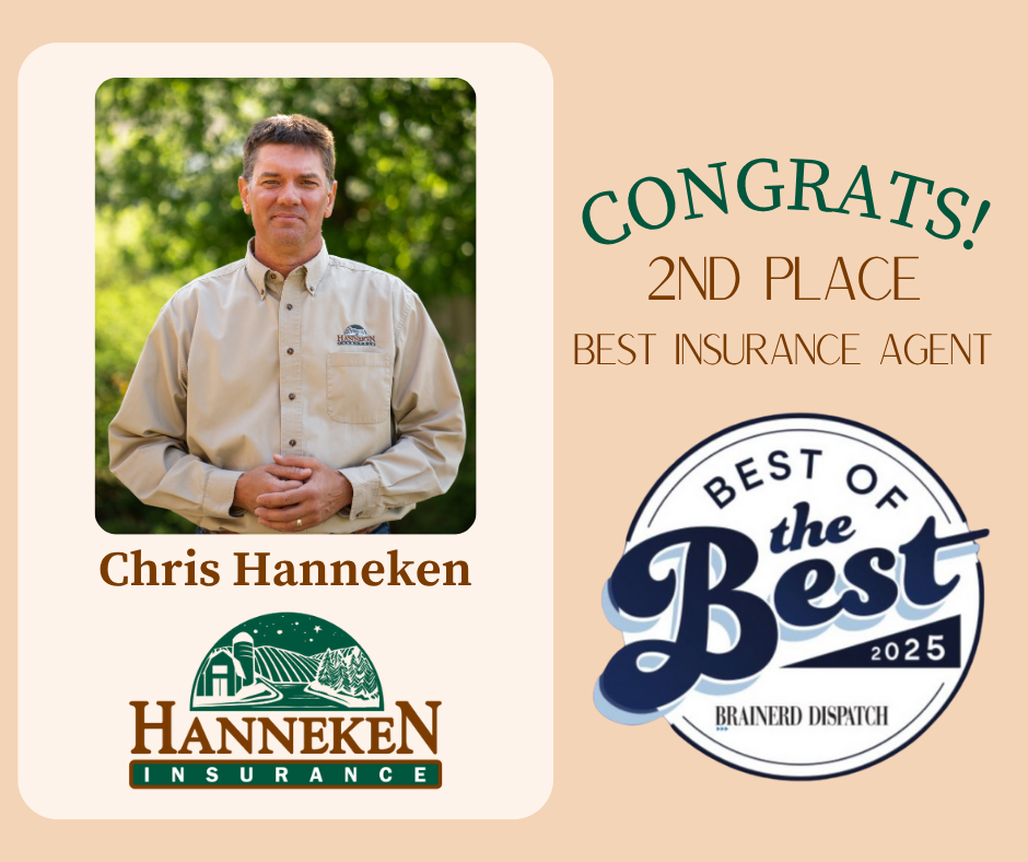 Our very own Chris Hanneken recently won 2nd place for Best Insurance Agent in the “Best of the Brainerd Lakes” contest organized by the Brainerd Dispatch. As co-owner of Hanneken Insurance, Chris demonstrates what it means to be a local, community driven business owner. Congratulations on this well-deserved designation!